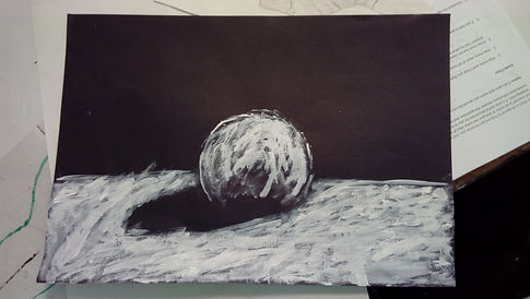 In the first picture it shows a painting of what my lino cut should look like. It was to give an idea of what it should look like as well depending on where the light was shining from and where the shadow was to be placed. Our task was to create a lino cut of a ball stood on top of a table using tone skills to show where light was coming from and where the shadow is.